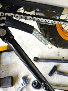 んで、先程ゆるめておいた手前側の六角付きボルトをモンキーレンチで締め付けていくと、